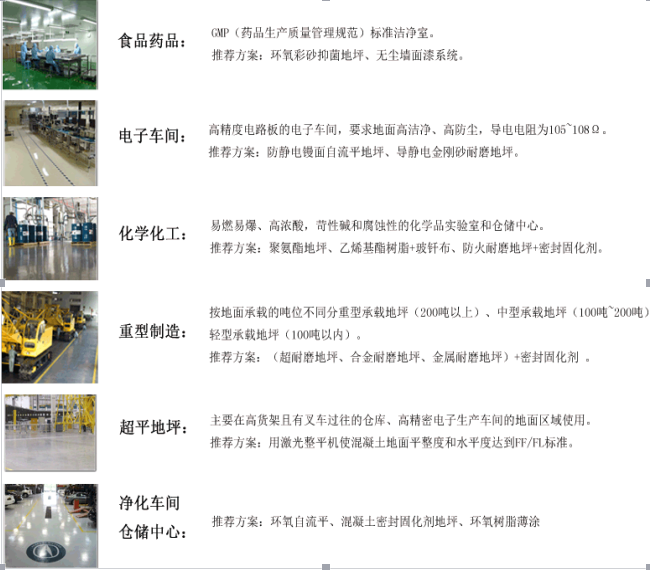 地坪漆最早是由德國于1934年發(fā)明,就是為解決工業(yè)廠房車間中防塵、防污、耐磨、防腐、耐重載、裝飾等問題。工業(yè)地坪經(jīng)過幾十年的發(fā)展,從材料到施工工藝都有很大的變化,根據(jù)各行業(yè)的不同需求有相對應(yīng)解決方案。近年來各個(gè)國家都在致力于綠色環(huán)保的無溶劑產(chǎn)品開發(fā)和應(yīng)用,水性類產(chǎn)品在市場上得到更多的認(rèn)可。