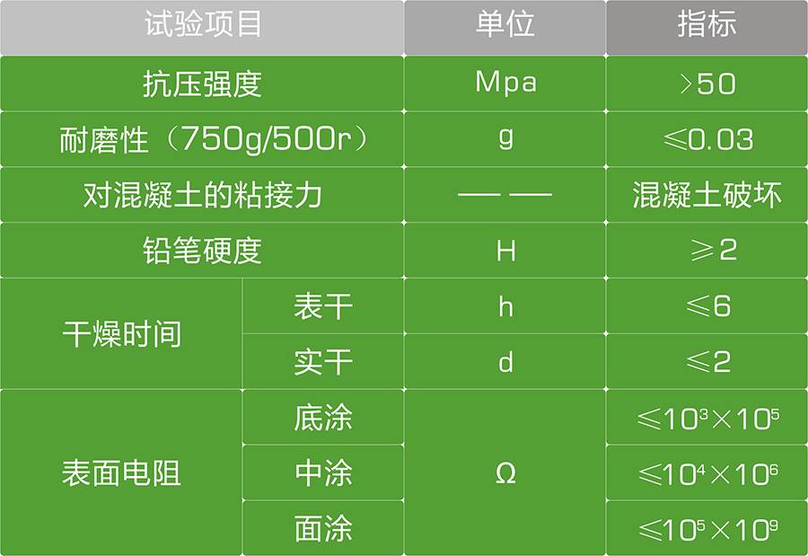 2.可快速排泄靜電電荷,表面電阻率達到105-109Ω地面電阻排泄符合國際GB6650—86A標準表面電阻穩定持久,不受天氣濕度和表面磨損影響